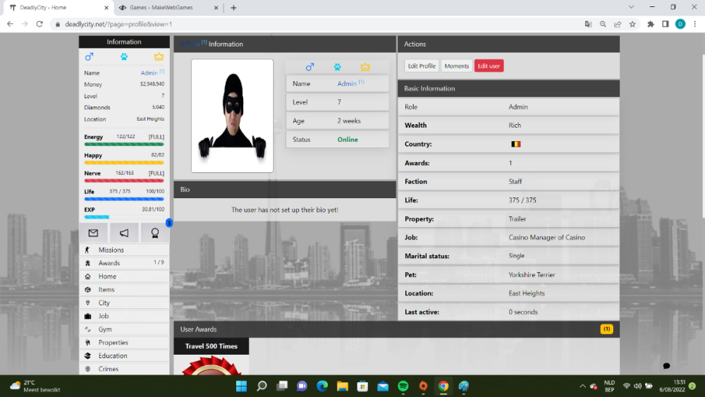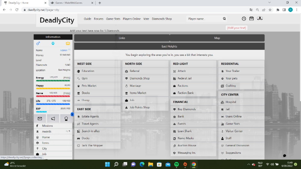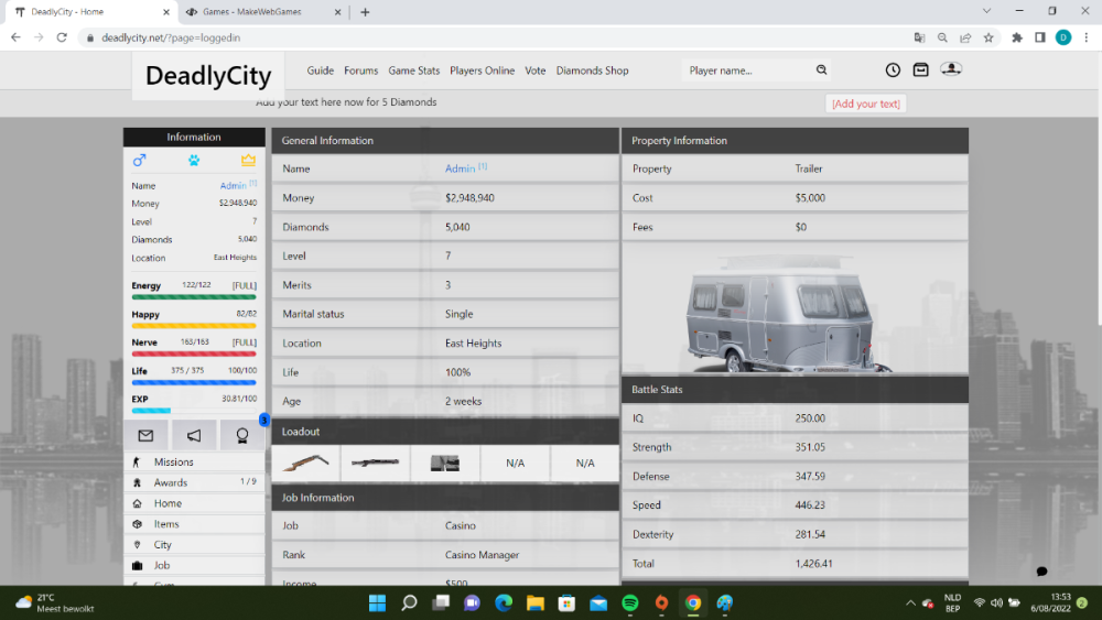 Deadlycity.net hi guys/girls I released my newest game and would like to know your opinion . Most of you all are experienced in gaming so its inportant to know how you all think about my game . added some screenshots but you are also welcome to test the game out . Game is ready to play but needs more content to be added .