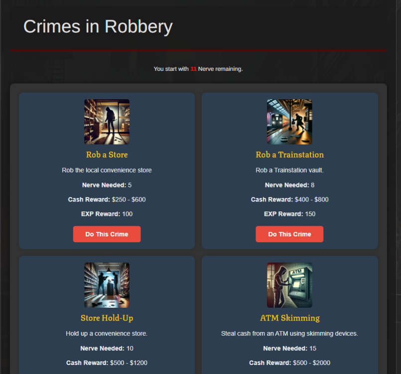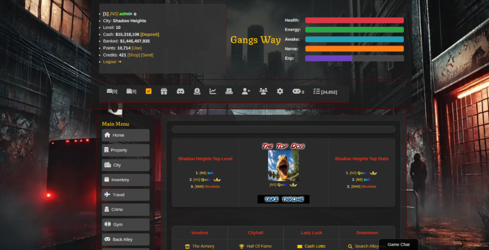 I’m selling Gangsway.com/legendary thugs i bought Legendary thugs here on makewebgames and worked for over a year to ad some new stuff. The game runs on php 8 and you will get both layouts. The gangsway layout needs some work to finish the mobile version . any questions pm me