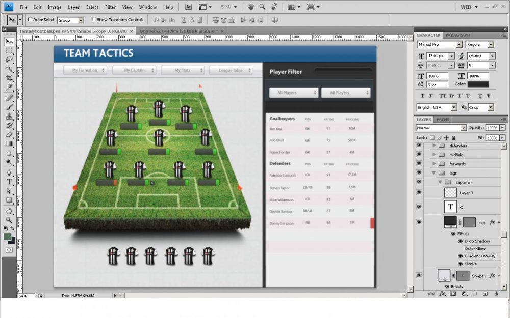 Hey, So i've not posted here in a while, and i've been working on a new layout since then - none mafia for once.. Anyways, still undecided on weather to go ahead with this project, and weather to do it as a web based project, or go towards an app styled game. Theme: Football or soccer if your our relatives from overseas General concept: Players will be able to create teams, tactics, formations, play against each other in leagues, transfer with other players etc etc. Still just the first design process, so nothing fully planned as of yet. I it was to be going for a web based site, i'd be changing the layout around for a more structured layout with navigational areas etc. First layout concept: http://i.imgur.com/kivdQ.png
