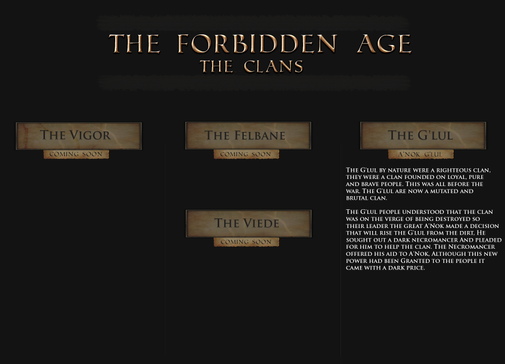 I'd just like to say I'm very happy about the feedback you guys are giving the game so far, I've just recently done a Logo design for TFA so check it out guys. Also just setup a Facebook page, where I will be releasing Lore, Images, Updates and so forth - https://www.facebook.com/TheForbiddenAge
