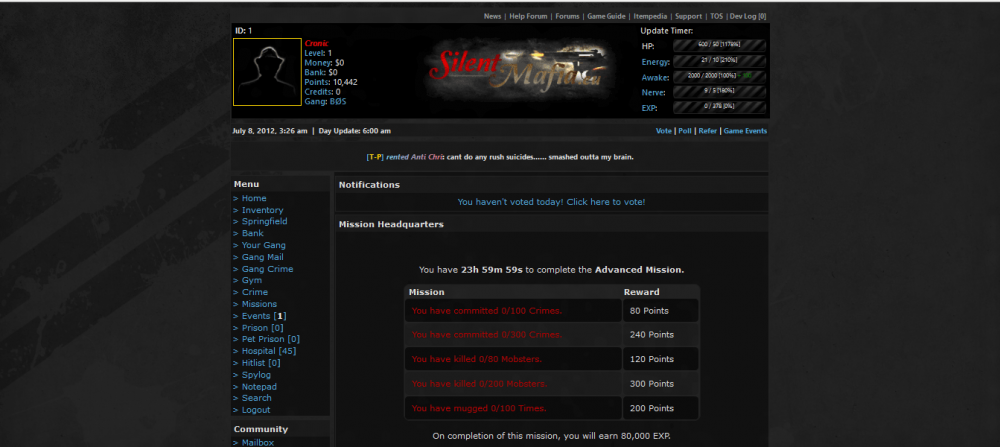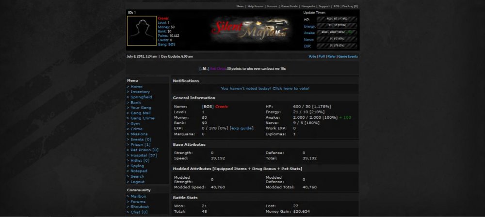 MafiaHeros is a web based mafia-style browser based RPG, which means you don't have to download anything at all, you play it all in your web browser. In MafiaHeros, you choose your own path. Whether you want to train your stats and become the strongest player, or become a gang president and actually effect and change aspects of the game, it is entirely up to you. http://mafiaheros.com/