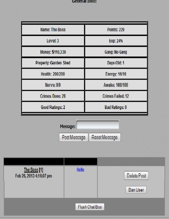 I need chat mod made. For MCCodes Redux (v2.5) 2.5.6bchavdave replied to EATmyFIST's topic in Paid Modifications I have converted cronus Shoutbox from v2 to Redux :D [ATTACH]868[/ATTACH] I have Converted Cronus Shoutbox v2 to Redux Enjoy Download the files and follow the install.txt Really Simple/ shoutbox_redux_mod.zip
