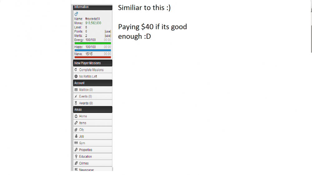 Would you have any nice Gang themed menu's like torn city ? Wouldn't mind purchasing one. :)