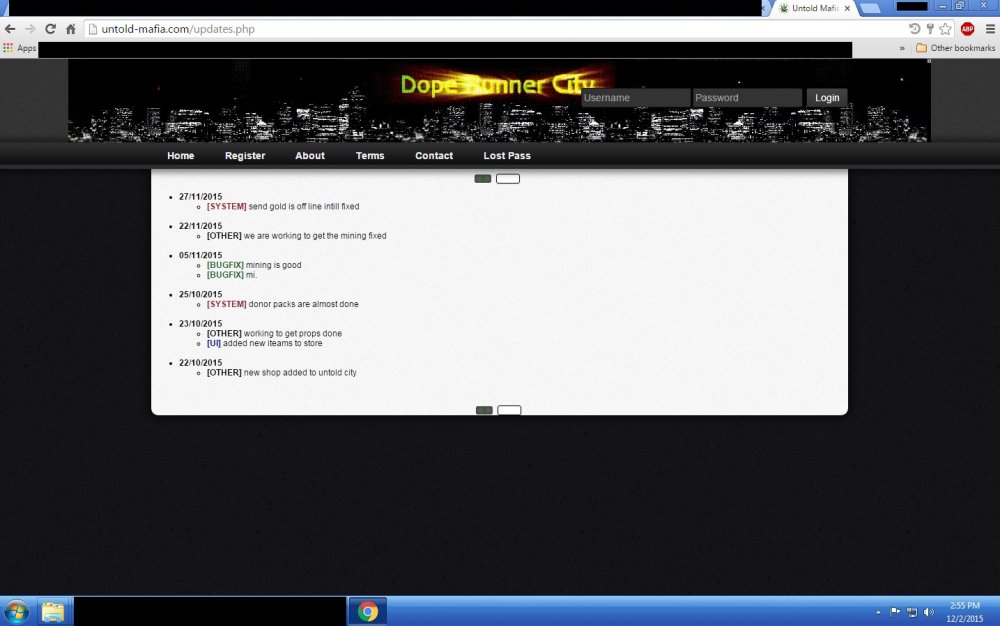 http://untold-mafia.com/updates.php still have my banner and drcity on the game to, glad i got screen shots [ATTACH]2240[/ATTACH]