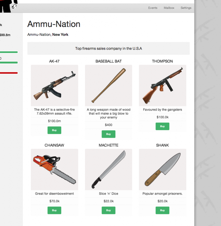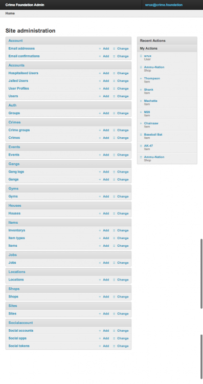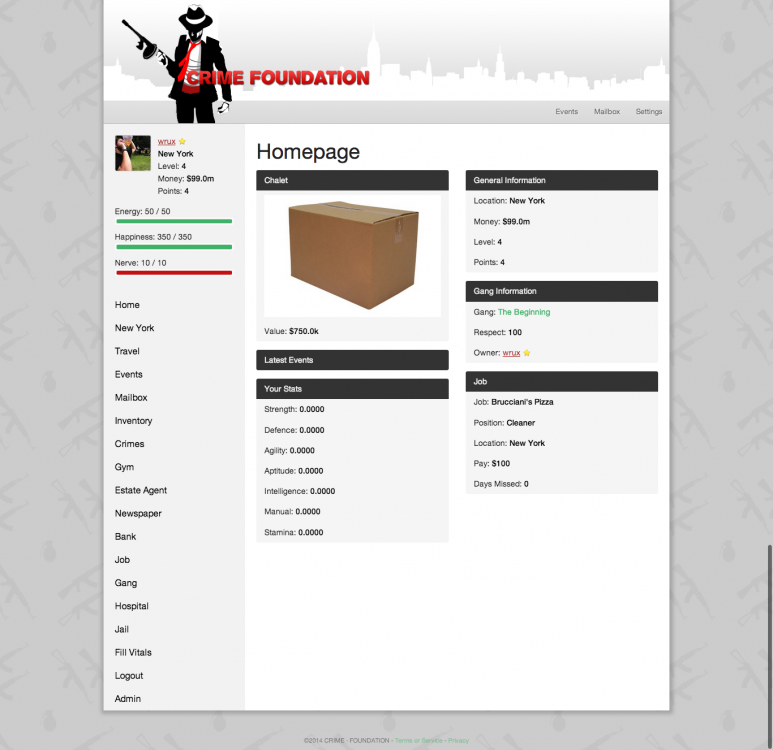 So recently i've taken on quite a few freelance projects and my project I started has been put on the sidelines. My game has been put on the sidelines which sucks but I have more important projects at the minute. I know that I will not have much time on it at all without dropping paid work which is also paying me money so i'm hoping that somebody could take it off my hands. I am selling my game Crime Foundation with the following: - Exclusive game rights. I will not keep any of the code and make my own project again later - Two domains; - - crimefoundation.com - - crime.foundation - I will transfer ownership of the domains and set up the game on your server. - A year long SSH certificate - I will also offer to help with the game and give you support for as long as you need it (within reason) Here are some screenshots. Some reason the chrome plugin I used to take the screenshots gitched out the page a bit on the admin screenshots. Saves me opening up photoshop to stitch a few screenshots together: [ATTACH=CONFIG]1612[/ATTACH] [ATTACH=CONFIG]1613[/ATTACH] The admin section uses an ACL (access control layer) so you can add administrative users really easily and choose what they have access to with only a few clicks as apposed to having to code it all in. The backend also has a lot of super easy controls for controlling pretty much everything in the database. [ATTACH=CONFIG]1614[/ATTACH] [ATTACH=CONFIG]1615[/ATTACH] You can add social accounts to the game (i've only got facebook and twitter) and this is also added in the backend with only HTML required to implement on the front end. If you are interested private message me. I'm not sure what I want for this, I have put a lot of hours into the development as it is a bespoke piece of software. I'm sure I could come up with a good deal .
