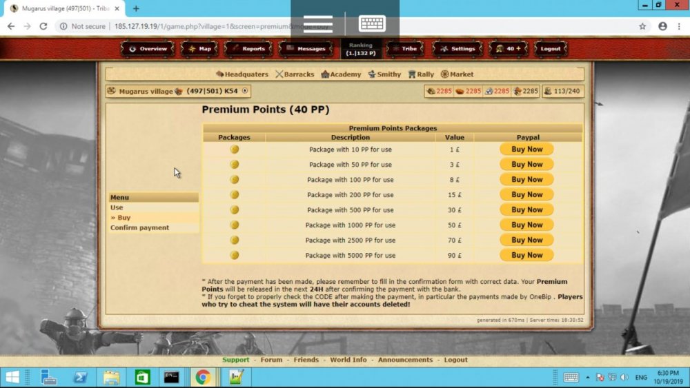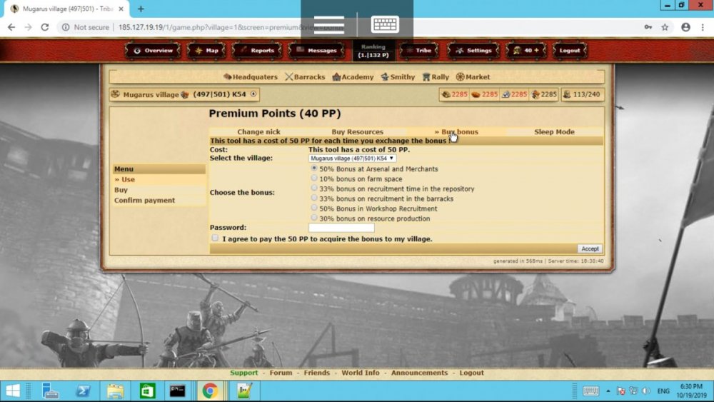 Its not a clone its a full custom script completely coded by me. The clones that our out for tribalwars are 10 years old, and look nothing like mine, i can provide screenshots of a tribalwars clone to show you that the cloned released versions are nothing like mine nd the only artwork by tribalwars that are being used is a single avatar images, that is actually open sourced and is not actually owned by tribalwarsTM If you take your time to look around rhe server you will see it is all custom built and has alot of differant features and custom modules that tribalwars does not have. It is fully licensed, fully secured and is far from a tribalwars opensource clone, the only clones of tribalwars are TWLAN and that is over 10 years old and as i said before looks nothing like my engine and has only 10% of the features my custom engine does.