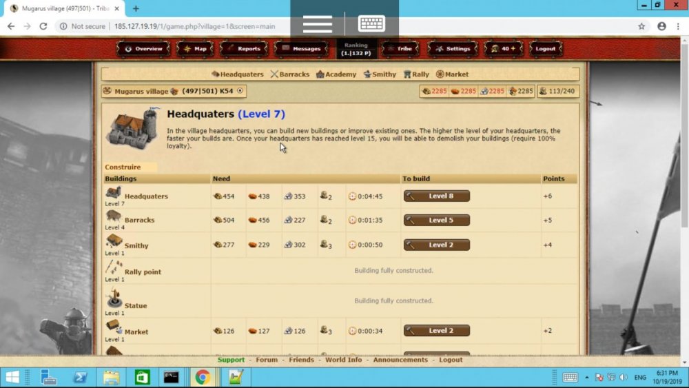 @KyleMassacreIt is currently live but not active as such as it is not complete, it is a custom engine as it has been rebuilt. @Cryptography yes there is a plan to redesign the game but i am not very good at css/designing myself, i have done abit but not alot. @adamhullyes i speak both language but i am currently in process of completing full english translation as it is a language mainly used in many countries and regions, also yes i have to look at the java for the login page to help load better, also the white background? Is this when initially creating a village and joining the world, if so this is because i am currently editing the css for this page and is under construction graphically? But thank you for all your feedbacks much appreciated