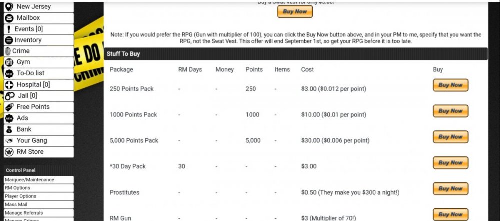 £100 ONO Hi im looking to sell my game https://crime-city.co.uk Its built with the grpg v1 engine but converted to PDO::(V?), it has a brand new stunning design and layout along with tons of new mods, also includes some personal mods that i have built. I have been working on this site for a while now, its fully responsive, comes with cloudflare protection, ingame floating chat module, page speed and Yslow scored are all 95% and above. im just looking to sell up and move onto a new project, not looking for a large amount, offers welcome. Contact me on discord Mugzy#2559 or on MWG? have a great day! NOTE: could only add a few images so please feel free to enter the site and take a look