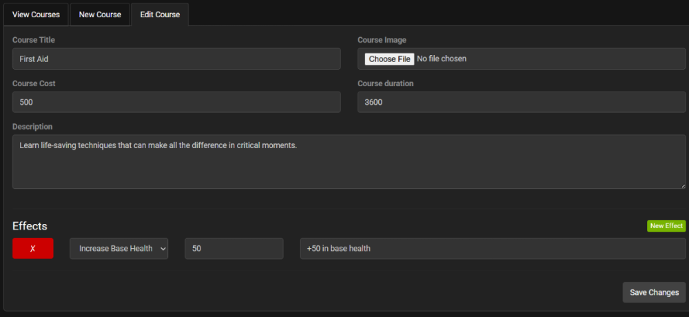 Hello everyone! I’m offering an Education System Module that seamlessly integrates into your GLv2 . This module introduces an interactive education system, allowing players to enroll in courses, complete lessons, and unlock rewards as they progress. 🚀 Features: 📚 Course Management ✅ Admins can create, edit, and delete courses and lessons. ✅ Set course descriptions, requirements, and rewards. ✅ Organize courses into structured learning paths. 🏆 Player Progression System ✅ Players can enroll in courses and track their progress. ✅ Unlock new lessons, gain experience, and earn rewards. ✅ The system supports prerequisites, ensuring structured learning. 🎮 User Integration ✅ Courses are linked to player ranks and levels for a balanced experience. ✅ Players can level up skills by completing courses and exams. ⚙️ Admin Controls ✅ Full control over course creation, deletion, and modification. ✅ Manage lessons, requirements, and rewards with ease. ✅ View and track player progress from a structured dashboard. 💰 Price: $60 💬 Interested or have questions? Feel free to PM me or reply to this thread! I also offer integration support if needed. 🔹 Demo: Game Name - Education 🔹 Login: User: admin Pass: admin 🖼️ Screenshots: Let me know if you’d like any tweaks! 🚀