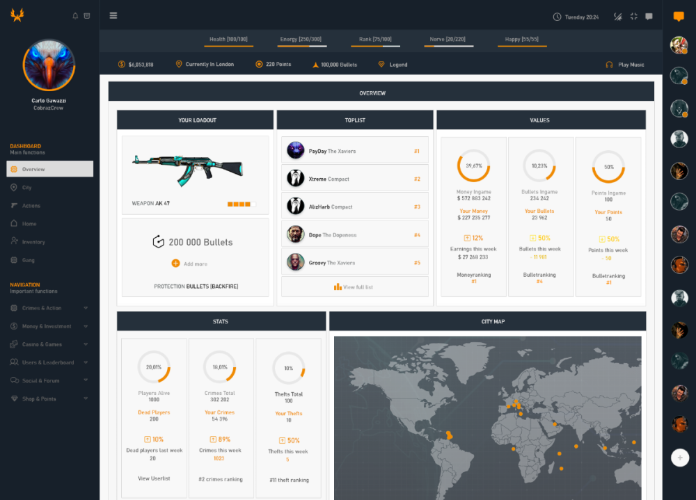Thanks for feedback, glad you like 🙂 I usually only make them in photoshop only, not in code. But Alizharb have coded up some of them for his game version (avaliable in marketplace). Some of the other themes/templates i use for projects i have with other developers. I have a lot of request on making designs for mafia and other stuff theese days, so my time is a bit limited, but i sure can help you if your time frame is not to strict 🙂 Thanks Canjucks 🙂