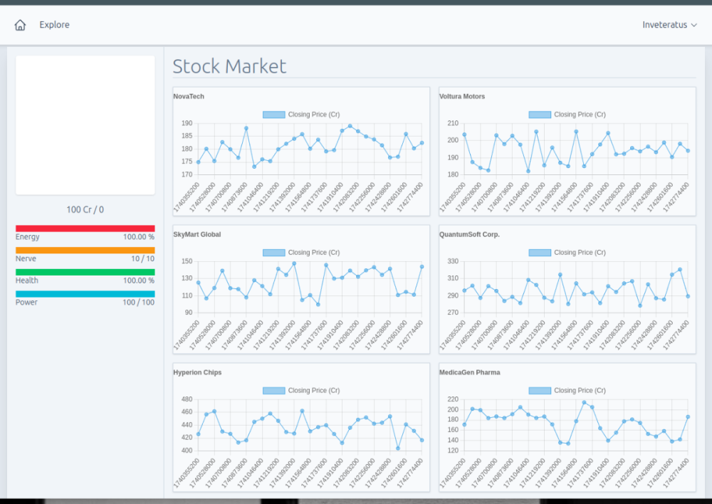 I've seen some stock markets in MCCodes-based systems, and sadly most fail for a number of reasons. A classic example being one I came across a year or so back. From what I can ascertain from playing it; it had a cron running every 5 or 10 minutes changing the price to a random value with a set range. This meant that any smart player would monitor the market for a few days to determine the lower and upper bounds, then buy when within lowest 10-20% of the price range, and sell in the upper 80-90% of the range. Oddly, I had a mail from the admin/owner asking how I was managing to make so much money so quickly... Despite telling them, they failed to understand the underlying problem, and banned me a day or so later. My fault ? Possibly, I guess it is abusing a bug, but it's a bug that despite explaining it, the owner failed to take steps to address it in a timely manner. There's actually a number of problems here : Random values do not a stock market make. Using crons to update the prices. Failure to log actions on the market. And critically, not play-testing prior to release. So who to we address these ? 1. Use a noise generator There's a number of decent noise generators out there, though I find that Simplex is probably the best for mimicking a stock market. Remember, in a real market, prices are driven by "market forces", which essentially means the amount of stocks that are being bought and sold. As a game simply won't have the number of players to drive this, then using a noise function seems to produce the best result. 2. Crons are unnecessary when you can generate the values via your function in real time. Assume your noise functions is defined as : function noise( float $x ): float then you can pass in a UNIX timestamp scaled by (say) 1/255 (i.e. multiply by 0.003921568627451), then may get a result in the range -0.7888 to 0.6373. Multiple this by (say) 128 and add 127 you would see a range of 26.023 to 208.583. So while the main input into your noise function is essentially a time value you would actually be using it like: $timeScaleFactor = 1 / 255; $rangeFactor = 128; $rangeOffset = 127; $result = noise($time * $timeScaleFactor) * $rangeFactor + $rangeOffset; This gives you plenty of scope to vary the stock prices by changing the input variables, and the best bit is, being deterministic, the $result will always be the same for the same input values - so no need to use crons, you can generate the price at any time on the fly. 3. Logging actions There are multiple options here, probably the simplest is just to store the player-id, the transaction type (buy or sell), the stock-id, the number of stocks, and the price they were bought or sold at. Of course, you may not really need to log transactions assume you follow the next step closely. 4. Play testing This is extremely important, and sadly something that is often missed by owner/admins. Ideally unit and feature tests should be present to ensure the site actually works using either PHPUnit or PestPHP. After that, you can consider acceptance testing or simple just make sure you manually test EVERY page in your project. And that's not just a case of seeing if the page loads - drop in some bad data; i.e. try and buy -1 stocks, or putting string data into numeric fields. There's a number of techniques that people favor here - I tend to rely heavily on feature tests; but they may not pick up everything if you are lazy when writing your tests. Going back to the original example what would these points have addressed? Well for one, using a non-random system makes it more difficult to predict the outcome of the stocks despite being deterministic. Time is one factor, but you still may have to consider limiting the number of stocks available, or perhaps ensure that you cannot sell stocks for maybe 14 days. Without crons, we've got rid of a hidden problem and extra load which simply is no longer needed, though you would need to to do more work to present a stock graph rather than just pulling data out of the db. Logging is of course a simple one to address, and may not be needed if you trust your code and understand any potential pitfalls. Finally testing is probably the biggest one here. Without testing your code, you run the risk of missing something that may seem stable and fits in nicely in your project but suddenly introduces massive amounts of funds making your game highly unstable. If anybody has suggestions in improving the buy/sell experience, let us know - it's a potentially useful module for many games as it can tie up money for long periods of time. Finally, for reference, here's an example but of code you might want to play with: function noise(float $x): float { $permute = [ 151, 160, 137, 91, 90, 15, 131, 13, 201, 95, 96, 53, 194, 233, 7, 225, 140, 36, 103, 30, 69, 142, 8, 99, 37, 240, 21, 10, 23, 190, 6, 148, 247, 120, 234, 75, 0, 26, 197, 62, 94, 252, 219, 203, 117, 35, 11, 32, 57, 177, 33, 88, 237, 149, 56, 87, 174, 20, 125, 136, 171, 168, 68, 175, 74, 165, 71, 134, 139, 48, 27, 166, 77, 146, 158, 231, 83, 111, 229, 122, 60, 211, 133, 230, 220, 105, 92, 41, 55, 46, 245, 40, 244, 102, 143, 54, 65, 25, 63, 161, 1, 216, 80, 73, 209, 76, 132, 187, 208, 89, 18, 169, 200, 196, 135, 130, 116, 188, 159, 86, 164, 100, 109, 198, 173, 186, 3, 64, 52, 217, 226, 250, 124, 123, 5, 202, 38, 147, 118, 126, 255, 82, 85, 212, 207, 206, 59, 227, 47, 16, 58, 17, 182, 189, 28, 42, 223, 183, 170, 213, 119, 248, 152, 2, 44, 154, 163, 70, 221, 153, 101, 155, 167, 43, 172, 9, 129, 22, 39, 253, 19, 98, 108, 110, 79, 113, 224, 232, 178, 185, 112, 104, 218, 246, 97, 228, 251, 34, 242, 193, 238, 210, 144, 12, 191, 179, 162, 241, 81, 51, 145, 235, 249, 14, 239, 107, 49, 192, 214, 31, 181, 199, 106, 157, 184, 84, 204, 176, 115, 121, 50, 45, 127, 4, 150, 254, 138, 236, 205, 93, 222, 114, 67, 29, 24, 72, 243, 141, 128, 195, 78, 66, 215, 61, 156, 180, ]; $i0 = $x > 0 ? (int)$x : (int)$x - 1; $i1 = $i0 + 1; $x0 = $x - $i0; $x1 = $x0 - 1.0; $t0 = 1.0 - $x0 * 