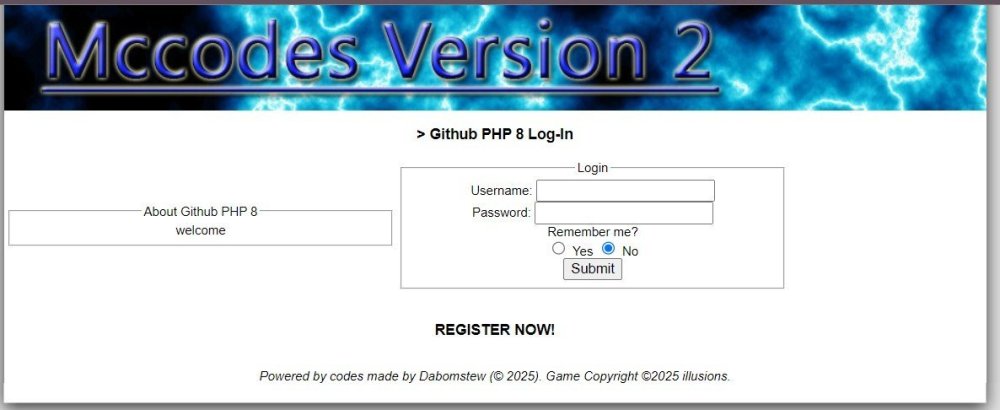 So its 2025 and we are at PHP 8.4 but whch version of MCCODES will pass the PHP 8 test.. we have 3 contenders MCC V2.0.5b From the MCCODES official site MCC V2.5 REDUX From the MCCODES official site (Which wont be reviewed cos I dont have a copy) or the now FREE V2 version from Github..... I will be using xampp running php 8.2 for these tests they will comprise of installation, First Login, Adapting older files First off the MCC V2.0.5b From the MCCODES official site ---------------------------------------------------------------------------------- Straight out of the box it was easy to unzip to a folder on xampp I went to localhost/mccodes/installer.php (why they couldnt let the index.php file tell if the install had already done is beyond me and if not installed grab the installer.php for you) but you have to type installer.php or MCCODES throws a wombly fit. As you can see above you have no choice but to ask for installer.php Once you do add the installer.php your met with the installer program which looks ok so we will start adding all our data on all them lines all lines filled time to press INSTALL Oh thats not good wheres the confirmation that tells you config file created success to Database and the cronjob links Well moving on to the next version the FREE github version FREE GITHUB VERSION i will follow same steps as before ----------------------------------------------------------------------- INSTALLATION same situation as the above there is nothing to tell if the config file exists and if not move on the installation on to the installation page the installer page has shifted to the far left of the page.. It somewhat installed it failed but it nearly got there I checked my Database and the dbdata.sql was inserted and the config.php file was created however no new user was added to the DATABASE and no mention of the cron setups SO NEITHER ACTUALLY INSTALLED But why not lets start with the GITHUB version (only cos this is an easy fix) I will mention that after the install failed I removed all files and folders and sent back a fresh copy of both Engines so lets start with GITHUB VERSION (how to fix the issue) ------------------------------------------------------------------------ $db->query( "INSERT INTO `users` (`username`, `login_name`, `userpass`, `level`, `money`, `crystals`, `donatordays`, `user_level`, `energy`, `maxenergy`, `will`, `maxwill`, `brave`, `maxbrave`, `hp`, `maxhp`, `location`, `gender`, `signedup`, `email`, `bankmoney`, `lastip`, `lastip_signup`, `pass_salt`, , `display_pic`, `staffnotes`, `voted`, `user_notepad`) VALUES ('{$ins_username}', '{$ins_username}', '{$e_encpsw}', 1, 100, 0, 0, 2, 12, 12, 100, 100, 5, 5, 100, 100, 1, '{$adm_gender}', " . time() . ", '{$ins_email}', -1, '$IP', '$IP', '{$e_salt}', '', '', '', '')"); Did you spot it in the code above. if you didnt go to line 471 which looks like `lastip_signup`, `pass_salt`, , `display_pic`, `staffnotes`, `voted`, `user_notepad`) and remove the exta , that has no real reasoning for being there Now lets see if the installer works SUCCESS the thing has installed ๐ and is working on PHP 8.2 And there you are So what can be done to make it easier well first off get the index script to work out if the config file has been written if its not there then grab the installer no need for people to type installer.php into the url bar add this to your index.php file before the <?PHP $install = 'installer.php'; if (file_exists($install)) { include('installer.php'); exit(); } for the failed installer.php if you cant be bothered altering it use the file beflow installer.php For the MCCODES mainsite version lets just say there was an extreme amount of editing to make it work more on the function error_php and the mention of MAGIC_QUOTES